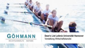 GÖHMANN hosted a recruiting event for members of the Dean’s List of the Law School of the Leibniz University of Hanover. We had three workshops and a dinner with seven of our more than 90 GÖHMANN lawyers, including: Dr. Benno Barnitzke (IP/IT), Dr. Ulrich Haupt (Corporate/Real Estate), Jens Hilger (IP/IT), Johannes Janocha (M&A/Corporate), Dr. Jennifer Rasche (Employment), Dr. Sebastian Scherrer (M&A/Corporate) and Dr. Christian Nordholtz (M&A/Corporate).